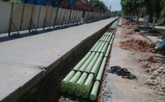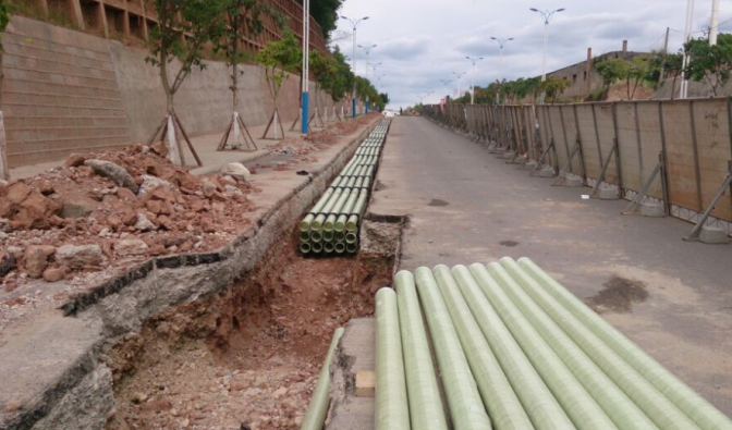 无碱玻璃钢电缆保护管与专用的配件配套使用,可以根据不同的工程要求组成多层多列的电缆排管系统,适用于城市电力电缆,通信电缆在各种场合埋地敷设时作保护管用,尤其在电缆过行车道直埋或过交通要道敷设时作保护管用,在电缆过桥,过河等特殊环境时作保护管,特别在电缆过桥时采用无碱玻璃钢电缆保护管,更能充分体现其施工简便,强度高等优越性。